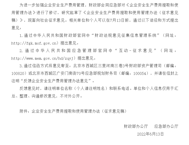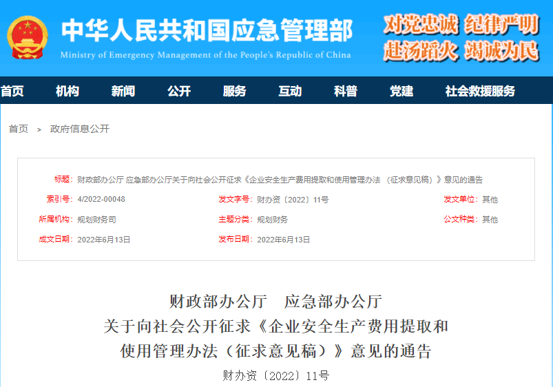 剛剛,應(yīng)急管理部又重新發(fā)布征求意見稿,這意味著新修訂的《企業(yè)安全生產(chǎn)費(fèi)用提取和使用管理辦法》將很快實(shí)施生效。2022年企業(yè)安全生產(chǎn)費(fèi)用的提取和使用將迎來大變動(dòng)。